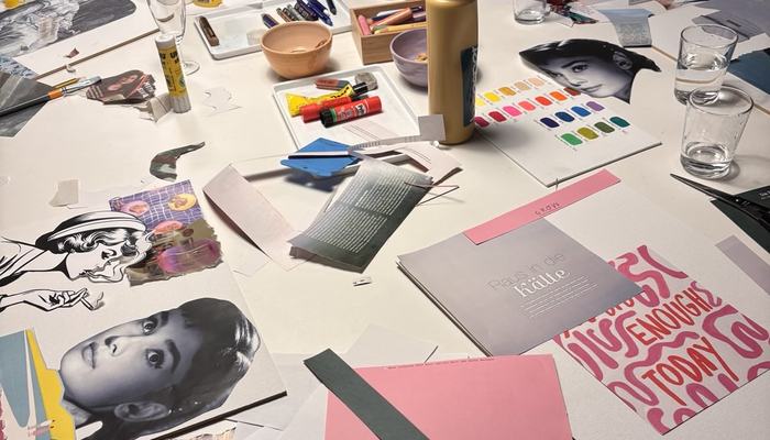 Herrliche Mischtechnik mit Farben, Papier, bisschen Vintage oder Pop, nostalgisch oder wild. Alles ist möglich.